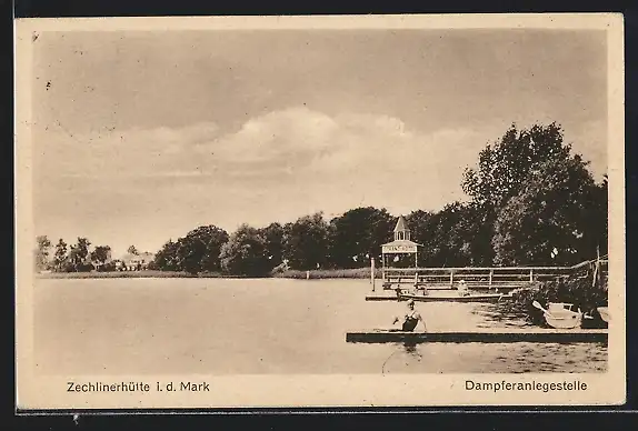 AK Zechlinerhütte i. d. Mark, Dampferanlegestelle v. Strandhotel, Dame im Badeanzug
