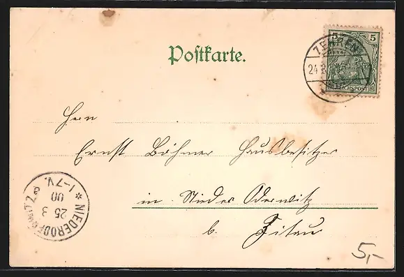 alte Ansichtskarte, gelaufen 1900, Eckknick oben rechts, guter Zustand