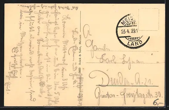 alte Ansichtskarte, gelaufen 1929, Briefmarke entfernt, guter Zustand