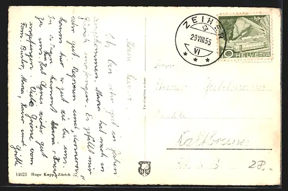 gelaufen 1955, Eckknick re. oben, guter Zustand