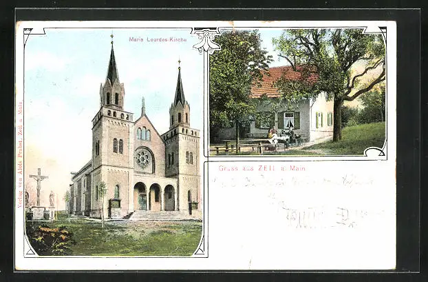 AK Zeil a. Main, Maria Lourdes-Kirche, Gasthaus