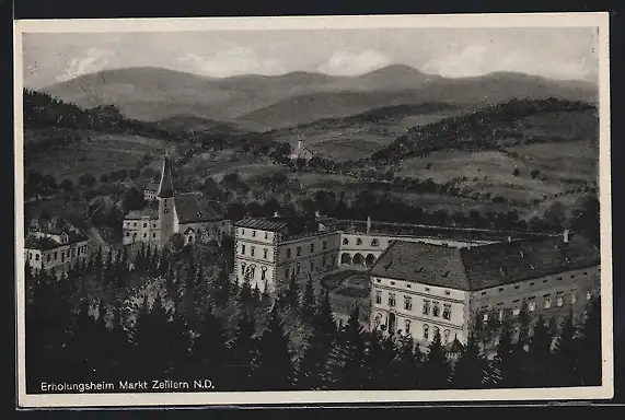 AK Zeillern, Erholungsheim und Kirche aus der Vogelschau