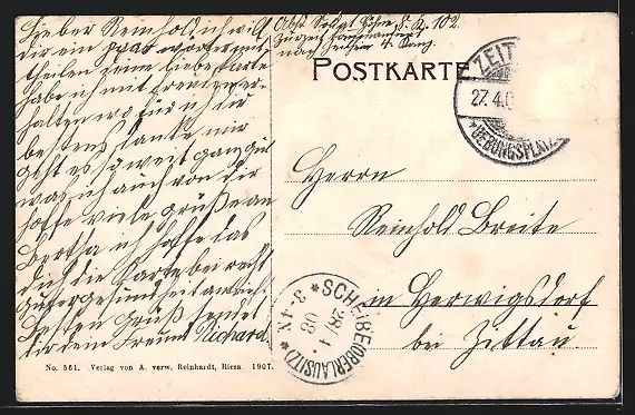 alte Ansichtskarte, gelaufen 1908, Briefmarke entfernt, guter Zustand