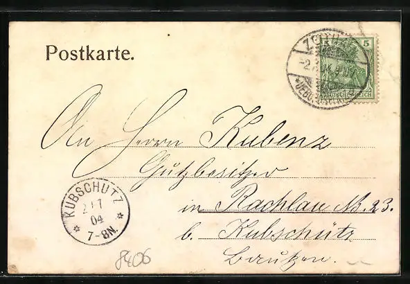gelaufen 1904, Einriss und Eckknick li. oben, guter Zustand