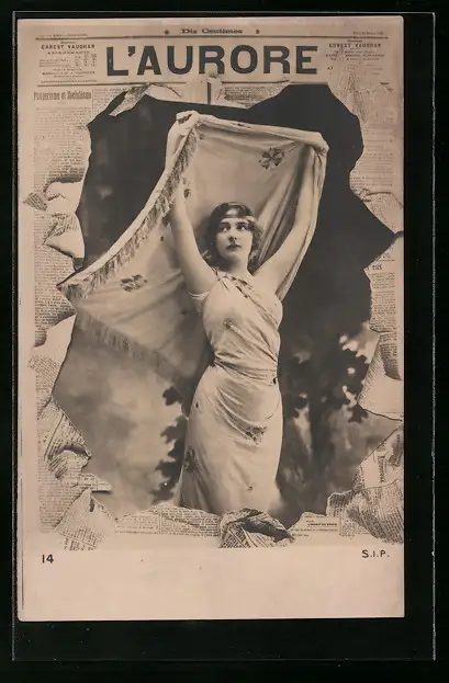AK Zeitung L`Aurore, Dame posiert mit Tuch