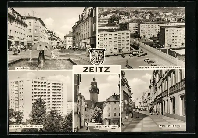 AK Zeitz, Leninstrasse, Zwillings-Wohnhochhaus