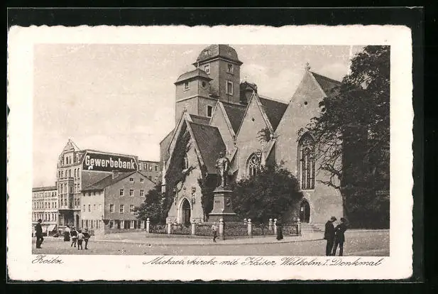 AK Zeitz, Michaeliskirche mit Kaiser Wilhelm I. Denkmal