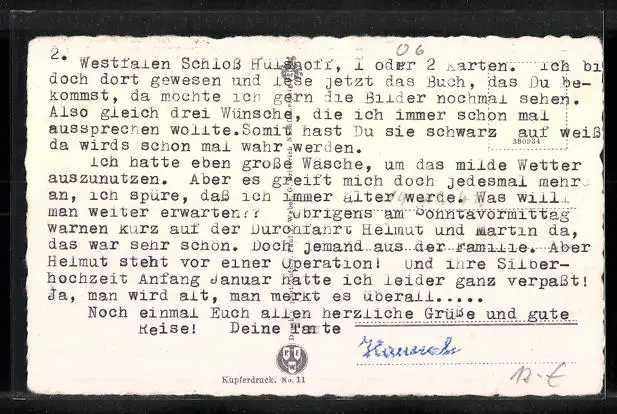 alte Ansichtskarte, ungelaufen, Bugspuren verteilt auf Karte, Eckknick unten li., guter Zustand