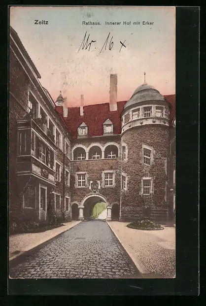 AK Zeitz, Rathaus, Innerer Hof mit Erker
