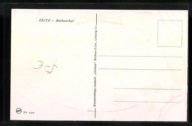 Personenbezogene Daten auf der Rückseite der Karte wurden durch blauen Textmarker unkenntlich gemacht. Die blauen Stellen sind auf die Vorderseite durchgeweicht und wirken sich negativ auf das Postkartenfoto aus