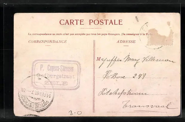 gelaufen 1907, Briefmarke entfernt, Eckknick links oben, guter Zustand
