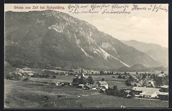 AK Zell / Ruhpolding, Gesamtansicht mit Gebirgswand
