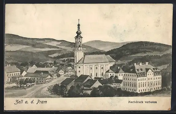 AK Zell a. d. Pram, Ortspartie mit Kirche