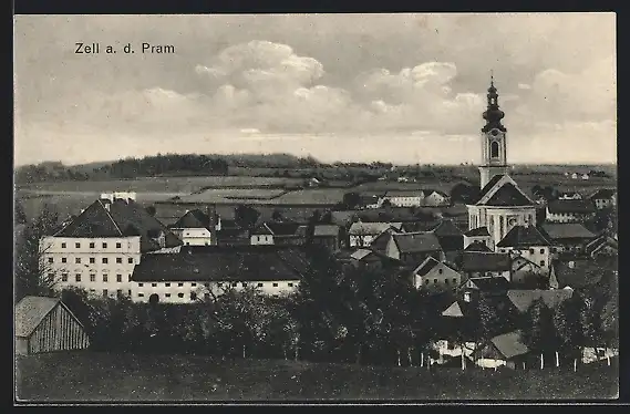 AK Zell a. d. Pram, Teilansicht mit Kirche aus der Vogelschau