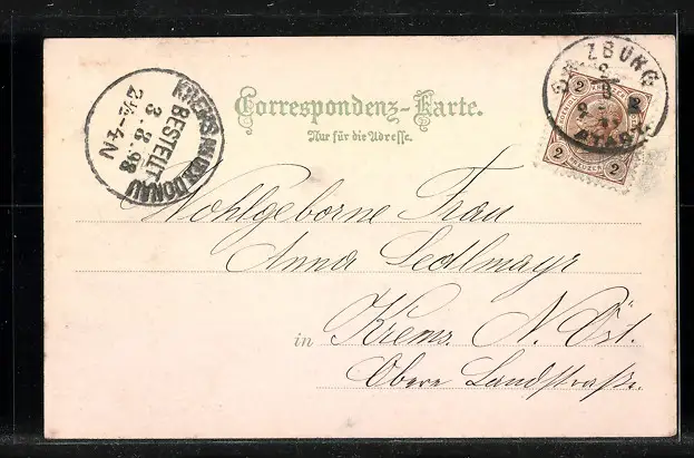 alte Ansichtskarte, gelaufen 1898, guter Zustand