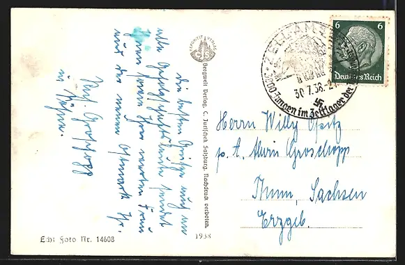 alte Ansichtskarte, gelaufen 1938, guter Zustand