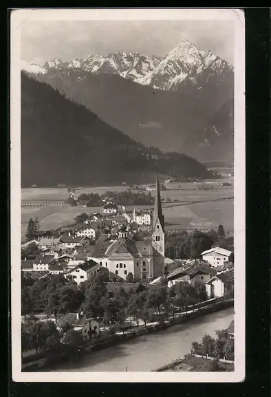 AK Zell im Zillertal, Ortsansicht gegen die Berge