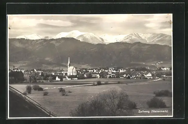 AK Zeltweg, Ortsansicht aus der Ferne