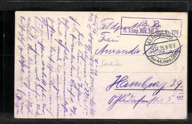 gelaufen 1915 als Feldpost, guter Zustand