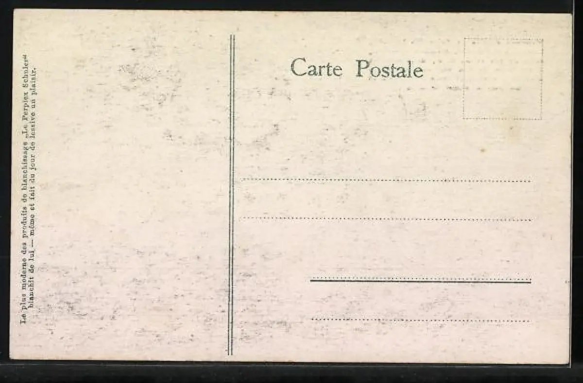 Personenbezogene Daten auf der Rückseite der Karte wurden durch blauen Textmarker unkenntlich gemacht. Die blauen Stellen sind auf die Vorderseite durchgeweicht und wirken sich negativ auf das Postkartenfoto aus