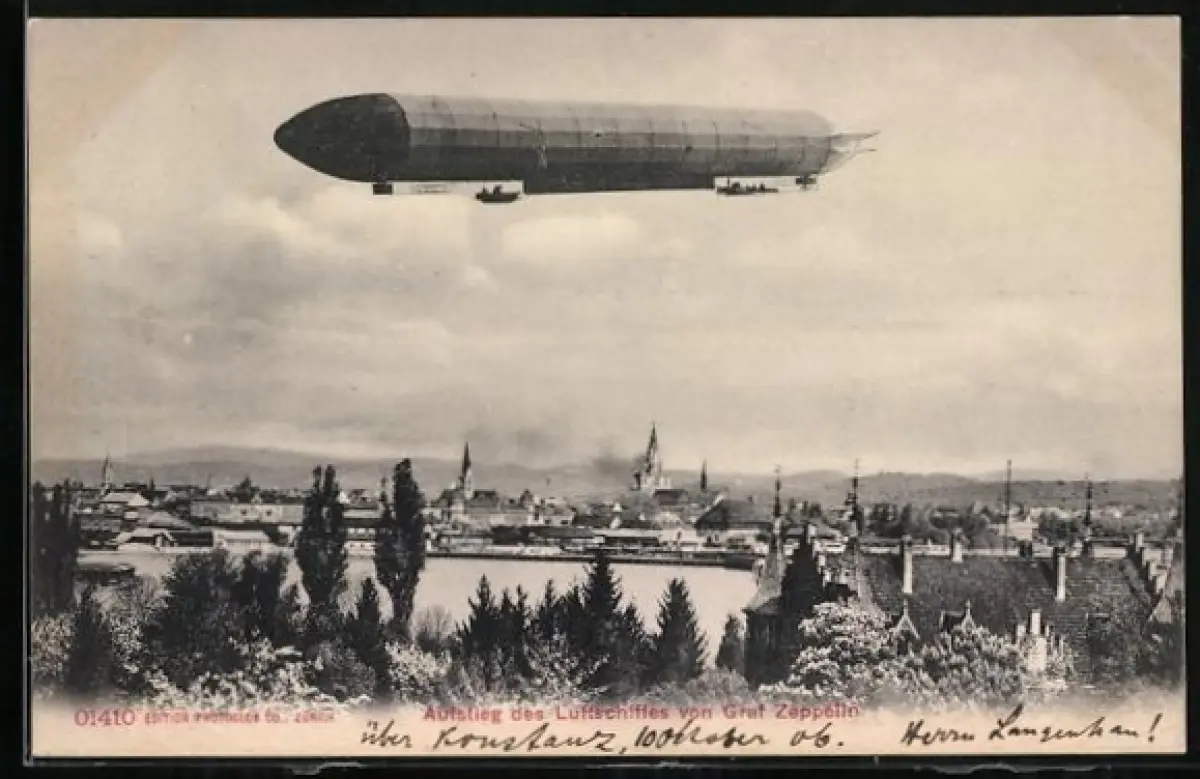 AK Zeppelin-Luftschiff überfliegt einen Ort