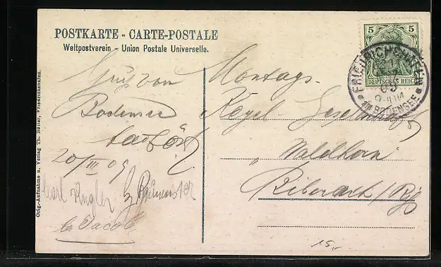 alte Ansichtskarte, gelaufen 1909, guter Zustand
