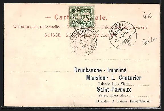 gelaufen 1900, Eckknicke li. oben und re. unten, guter Zustand