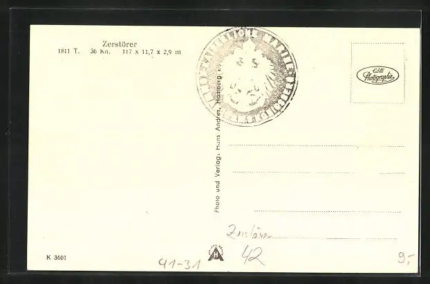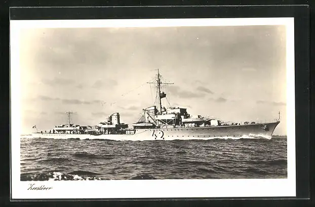 AK Zerstörer 42 der Kriegsmarine in voller Fahrt