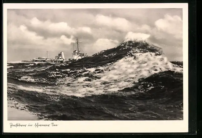 AK Zerstörer der Kriegsmarine in stürmischer See