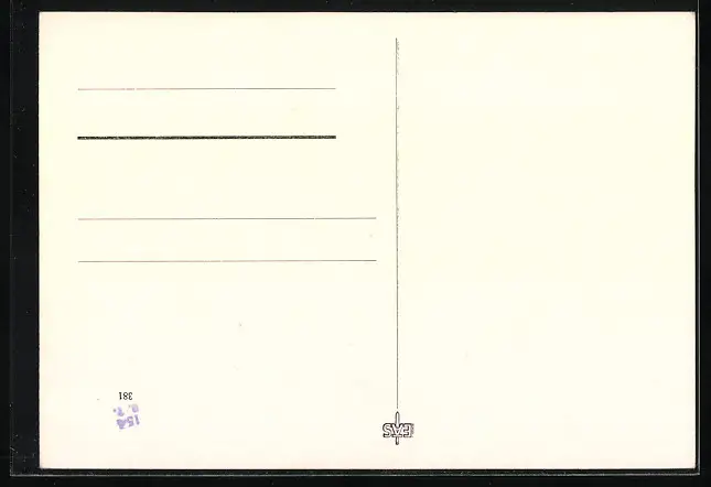Personenbezogene Daten auf der Rückseite der Karte wurden durch blauen Textmarker unkenntlich gemacht. Die blauen Stellen sind auf die Vorderseite durchgeweicht und wirken sich negativ auf das Postkartenfoto aus