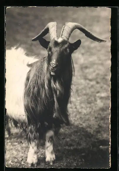 AK Ziegenbock mit langen Hörnern auf einer Wiese
