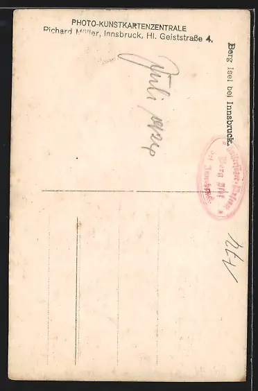 Personenbezogene Daten auf der Rückseite der Karte wurden durch blauen Textmarker unkenntlich gemacht. Die blauen Stellen sind auf die Vorderseite durchgeweicht und wirken sich negativ auf das Postkartenfoto aus