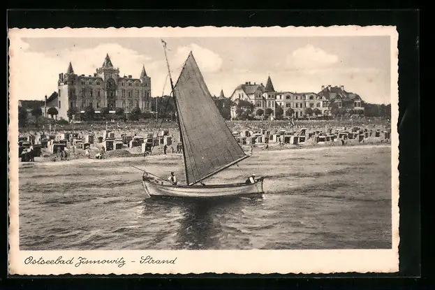 AK Zinnowitz, Ansicht Strand mit Segelboot