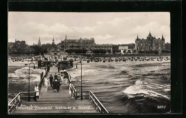 AK Zinnowitz / Ostseebad, Seebrücke und Strand