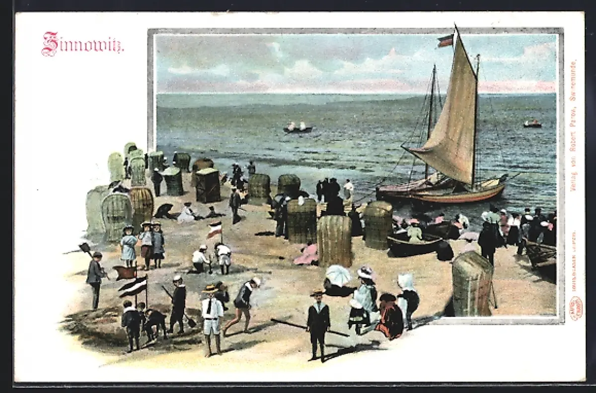 AK Zinnowitz, Partie am Strand, Segelboot