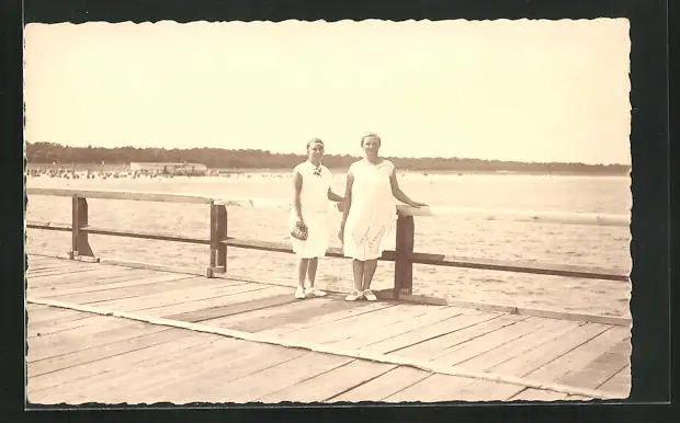 AK Zinnowitz, zwei Frauen stehen auf der Seebrücke