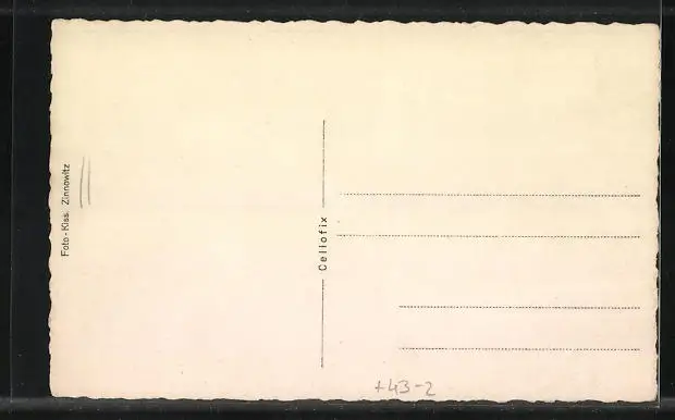 Personenbezogene Daten auf der Rückseite der Karte wurden durch blauen Textmarker unkenntlich gemacht. Die blauen Stellen sind auf die Vorderseite durchgeweicht und wirken sich negativ auf das Postkartenfoto aus