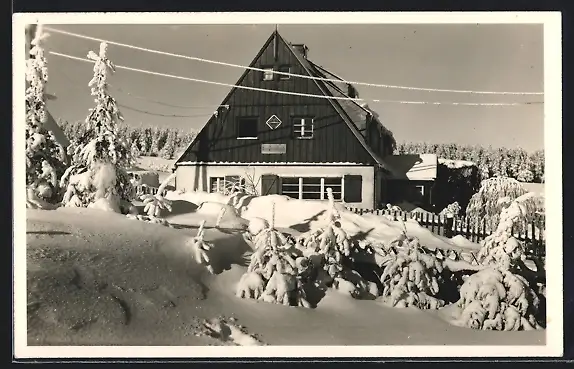 AK Zinnwald / Erzgeb., Jugendherberge im Winter