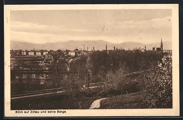 AK Zittau, Blick auf die Stadt und ihre Berge