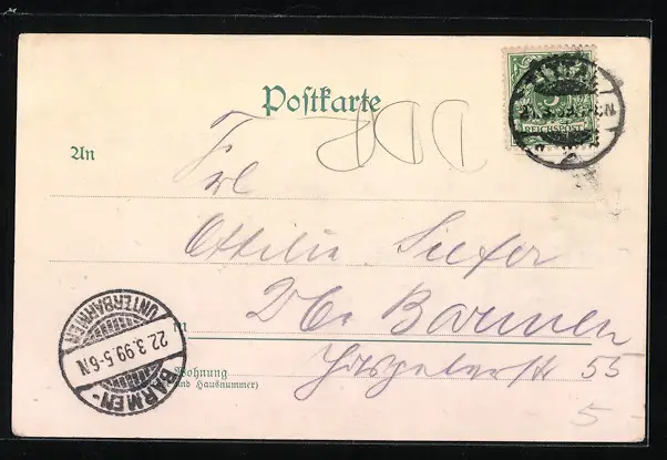 alte Ansichtskarte, gelaufen 1899, guter Zustand