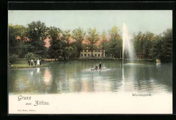 AK Zittau, Weinaupark, Fontaine mit Glitzerperlen