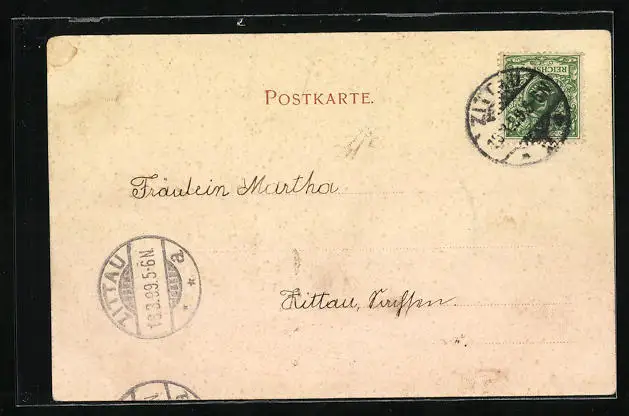 alte Ansichtskarte, gelaufen 1899, guter Zustand