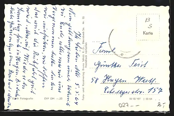 alte Ansichtskarte, gelaufen 1964, Briefmarke entfernt, Eckknick re. unten, guter Zustand