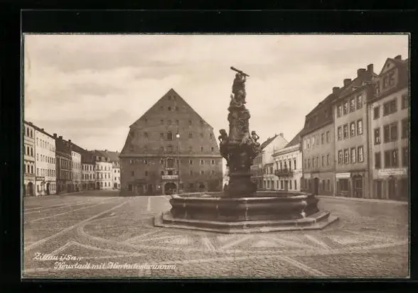 AK Zittau i. Sa., Neustadt mit Herculesbrunnen
