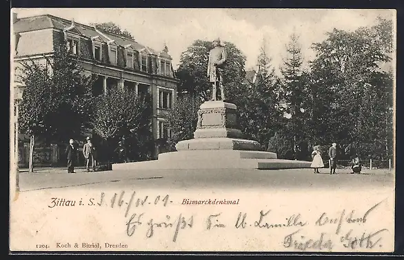 AK Zittau in Sa., am Bismarckdenkmal