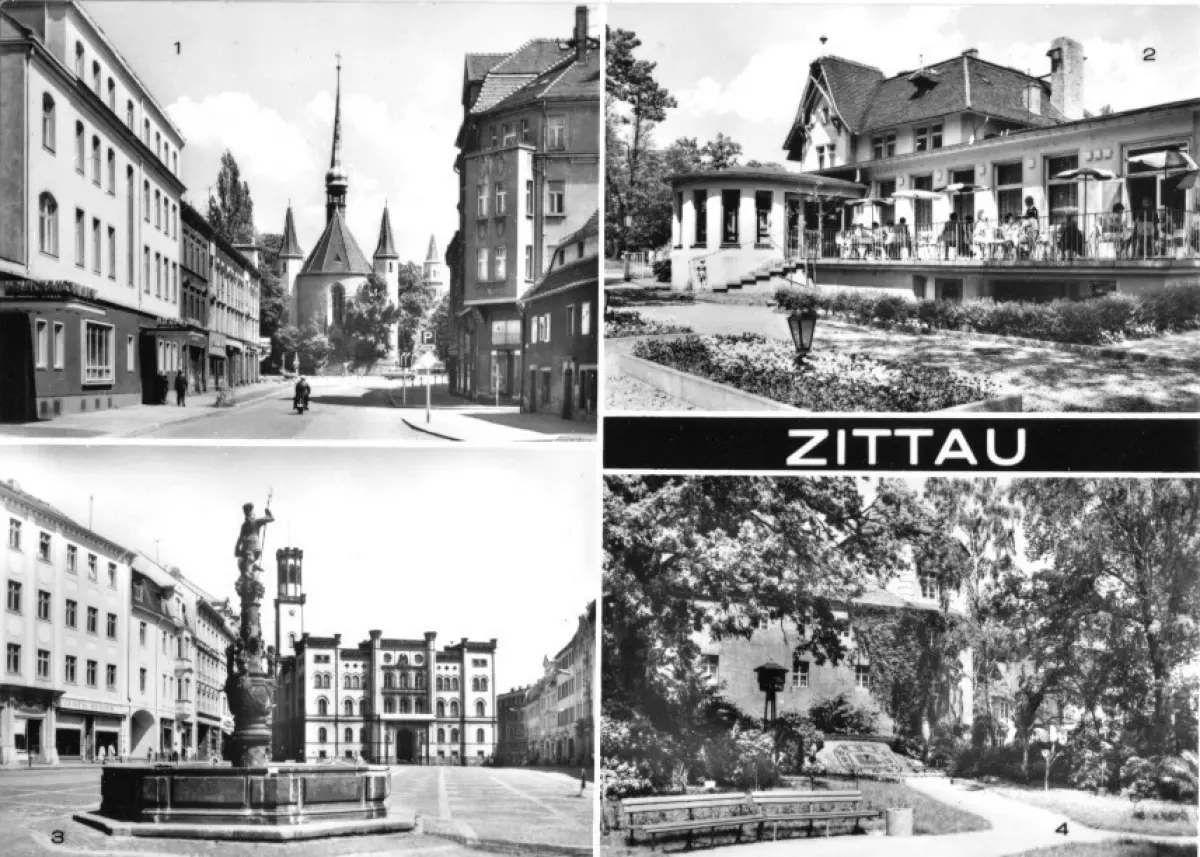 Ansichtskarte Zittau vier Abb. - Äußere Weberstr., HOG "Burgteich", Platz der Jugend, Blumenuhr und Meißener Glockenspiel Erhaltung I-II Druckart: Fotokarte ungelaufen Druckvermerk: 1979 Herstellungsland: DDR Verlag: Bild und Heimat, Reichenbach i. V. - 01 12 16 201