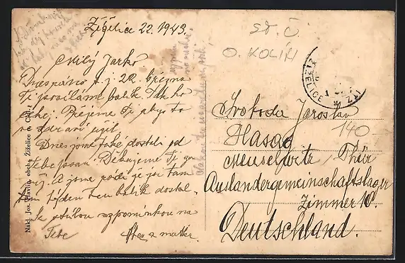gelaufen 1943, Briefmarke entfernt, guter Zustand