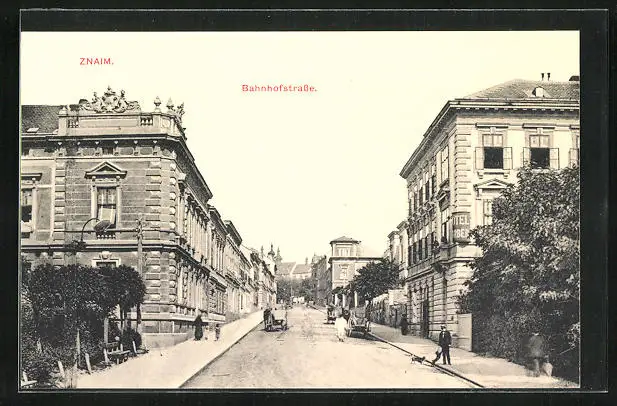 AK Znaim, Bahnhofstrasse gegen Kirche
