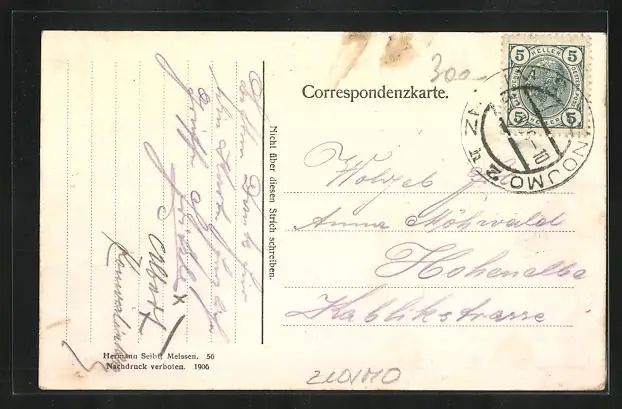 alte Ansichtskarte, gelaufen 1906, Stempelspur, guter Zustand