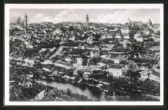 AK Znaim, Blick auf Stadtpartie am Fluss